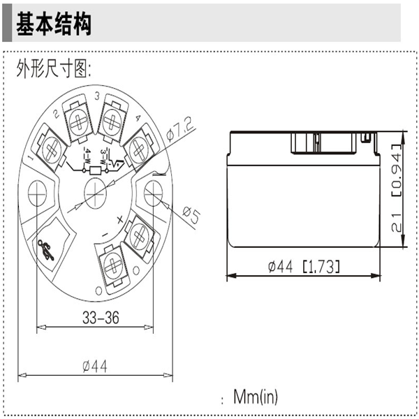 頭部安裝式智能溫度變送器,用于熱電阻(RTD)、熱電偶(TC)、電阻(Ω)、電壓(mV)信號輸入,二線制4~20mA模擬輸出,安裝于傳感器內部(Form B)。