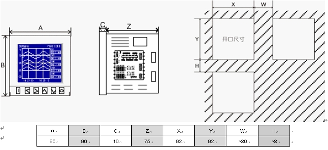 AB型外型尺寸(96×96×85mm) 安裝尺寸(92×92×75mm)