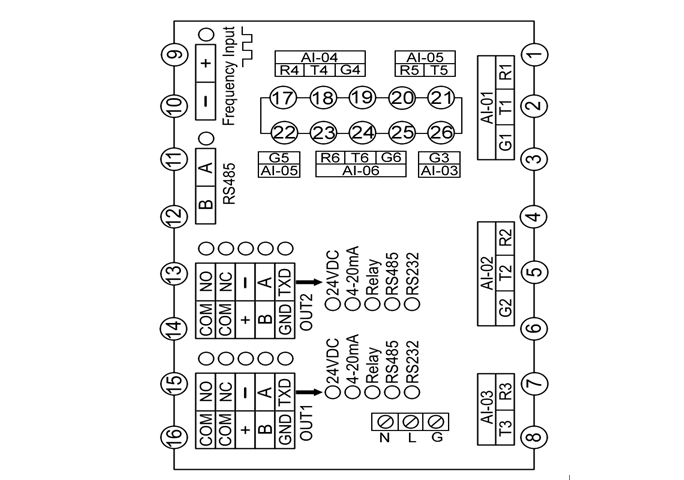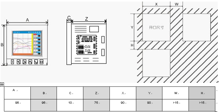 u 測量精度:±(0.2%FS+1)個字 u 電源電壓: AC85-240V、DC110V、DC24V u 顯 示:3.2寸TFT彩色320×240點陣 u 輸入規格: 熱電偶:K、S、N、E、J、T、 B、R、Wer526/523 熱電阻:PT100、CU50、CU100 線性電壓:0-5V、1-5V、0-10V、 0-20mV...... 線性電流:4-20mA、0-10mA...... 脈沖輸入:訂貨時須知脈沖大小 其它輸入:R、WRe526、mV、其它 ◆ 輸出規格: 變送輸出:4-20mA、0-10V...... (最多2路) 繼 電 器:R2A、R2B、R2C(最多2路) 饋 電:U1/U2/U3(最多2路) 打印/通訊接口:S1、S2、P USB接口:U u 記錄時間: 記錄間隔可任意設1、2、3、4、5、6、7、8……秒。 八筆記錄:360天 (記錄間隔1分鐘) u 斷電保護時間:用FLASH MEMORY保存設置參數和歷史數據,斷電后永久保存,采用硬件時鐘,掉電后也能準確運行。 u 環境溫度:-20-50℃ u 環境濕度:0-85%RH ◆ 外形尺寸:96×96×85mm u 安裝尺寸:92×92×75mm |